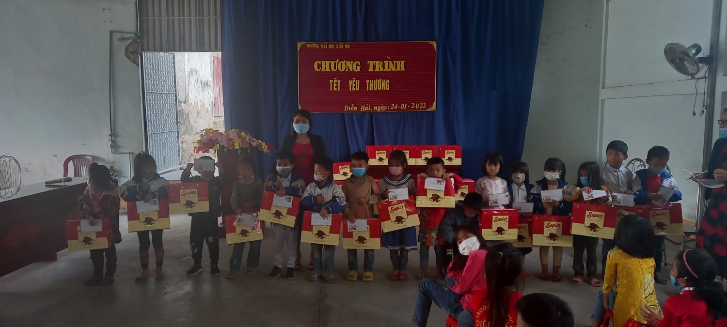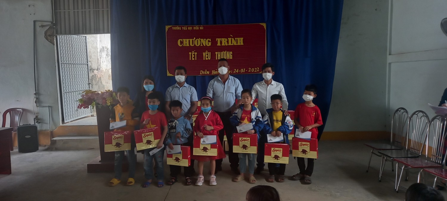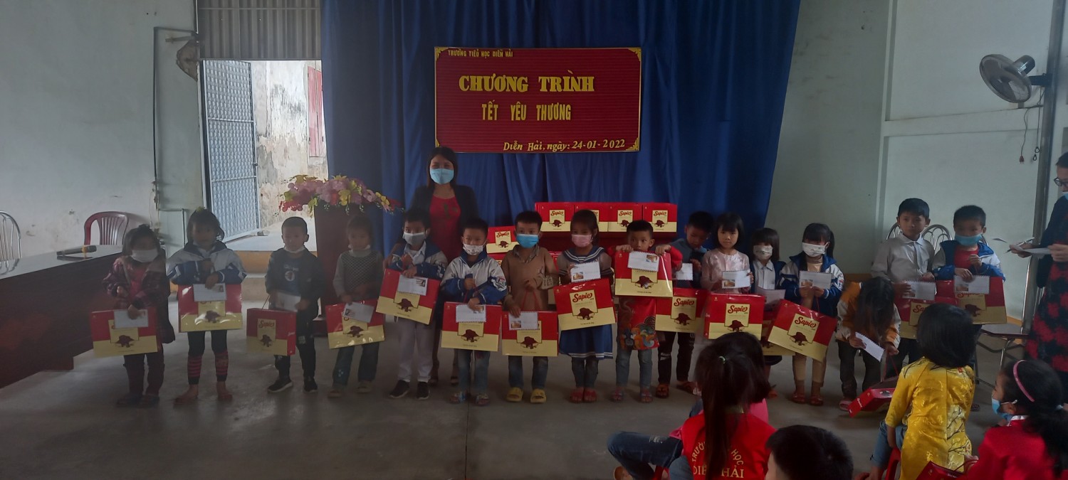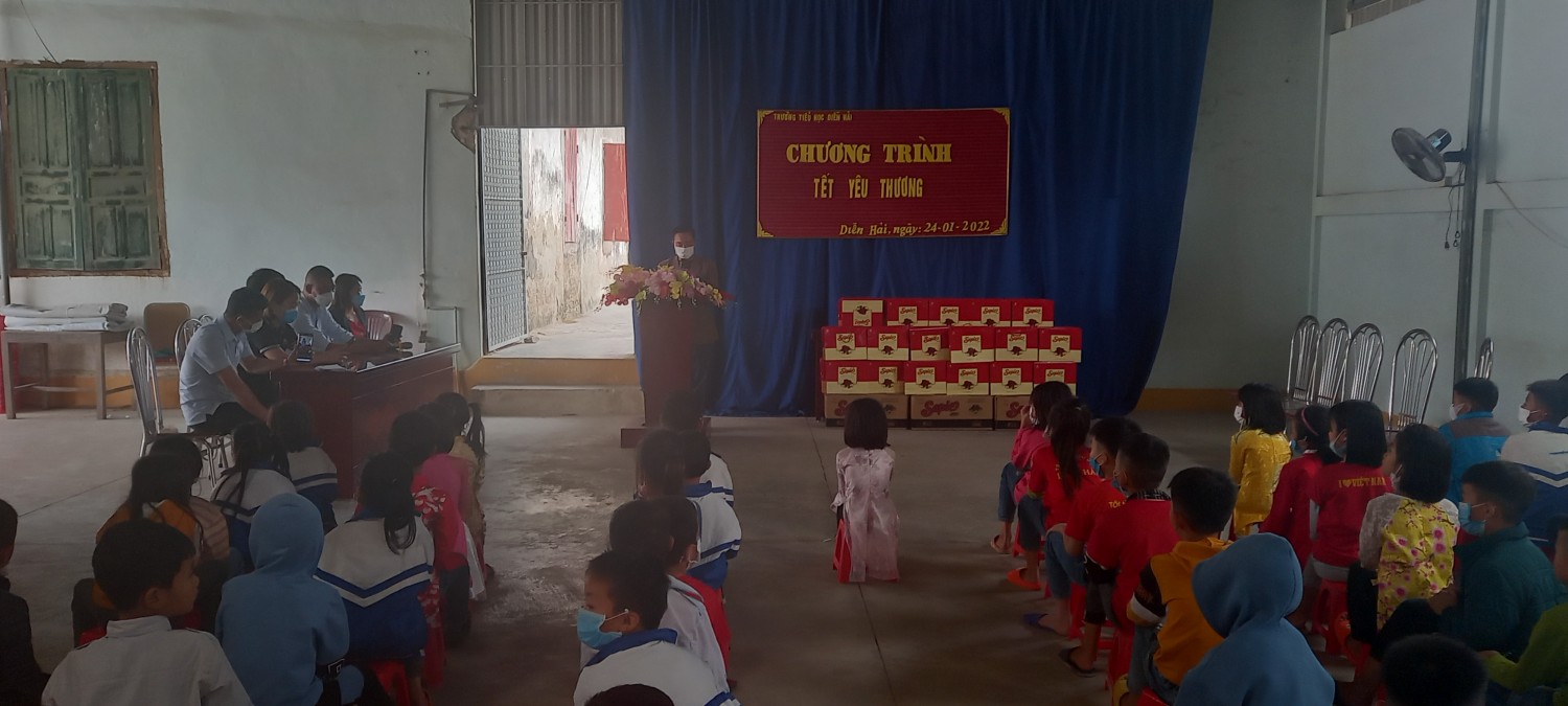 Thực hiện thư kêu gọi ủng hộ " Tết vì người nghèo" của UBND tỉnh Nghệ An và Công văn số 27/PGD&ĐT -CTTT ngày 07/01/2022 về việc giúp đỡ, ủng hộ người nghèo đón tết Nhâm Dần 2002. Sáng ngày 24/01/2022 trường TH Diễn Hải đã tổ chức buổi lễ Tết yêu thương cho các em học sinh nghèo, học sinh có hoàn cảnh đặc biệt. Nhà trường đã vận động được từ những nhà hảo tâm, doanh nghiệp, thầy cô giáo và các bạn học sinh trong nhà trường để các em có được cái tết ấm áp vui tươi bên gia đinh